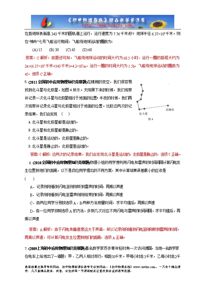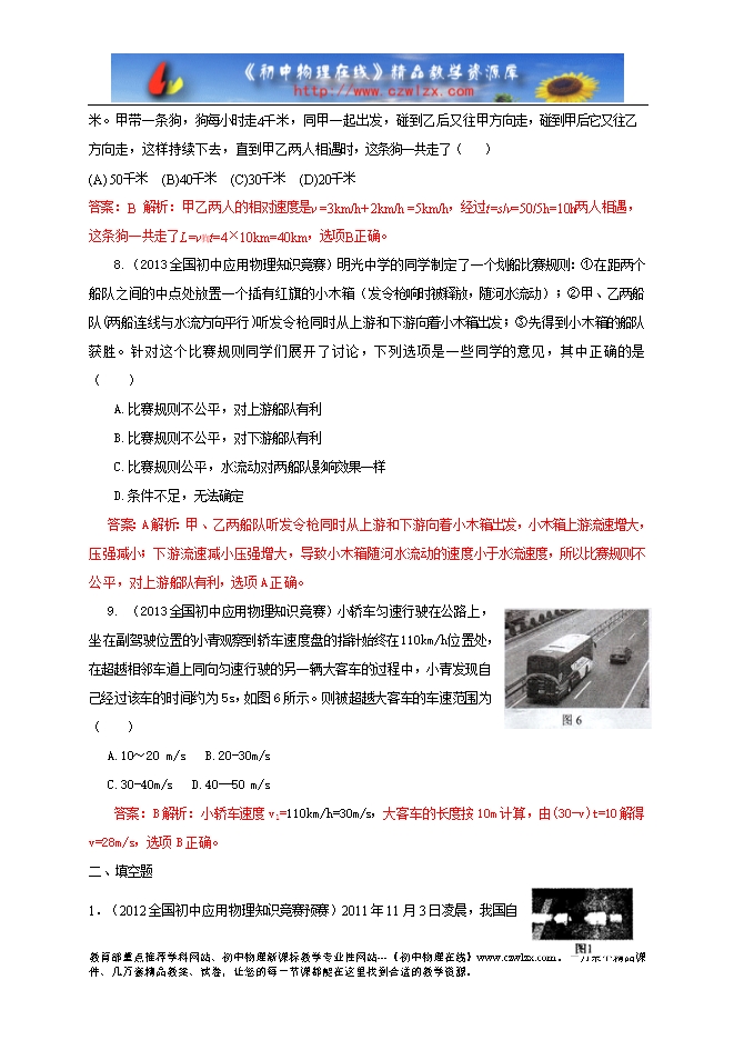 最近十年初中应用物理知识竞赛题分类解析专题1--机械运动