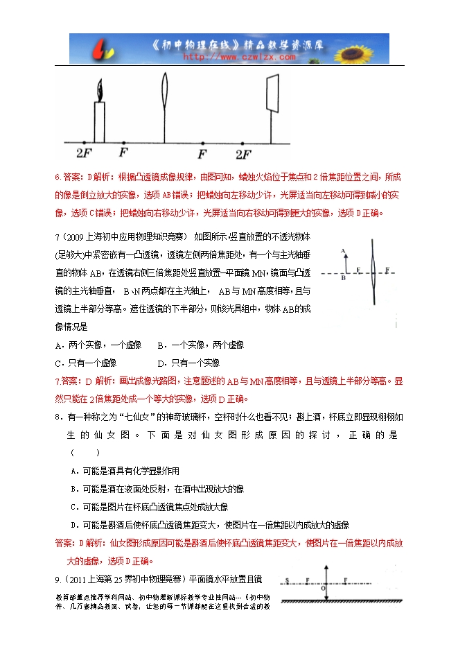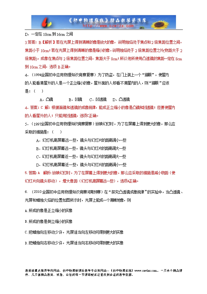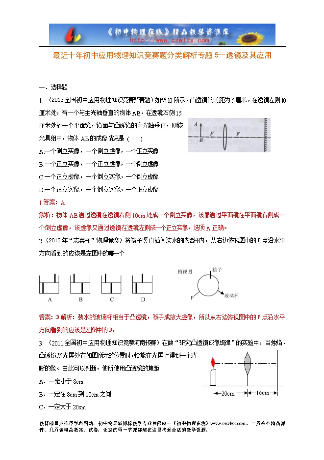 最近十年初中应用物理知识竞赛题分类解析专题5--透镜及其应用