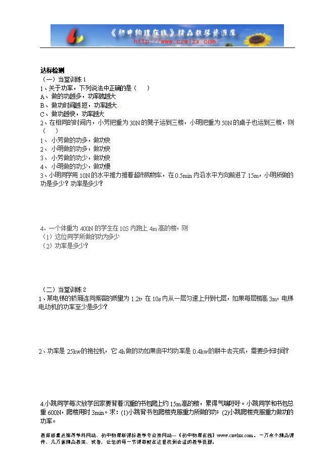 1、做相同的功,比较所用的时间,所用时间______,做功越快。