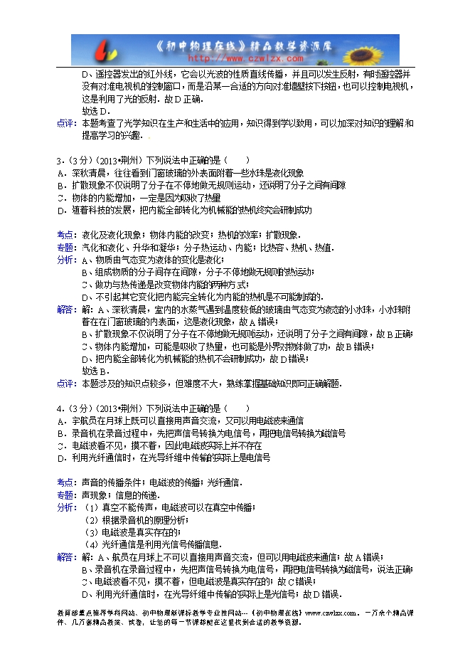2.(3分)(2013•荆州)关于光现象,下列说法中正确的是( )