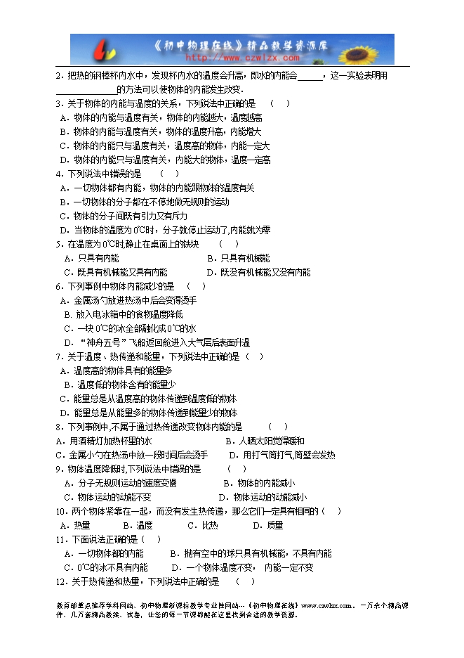 1. 叫做物体的内能;内能的单位: 。