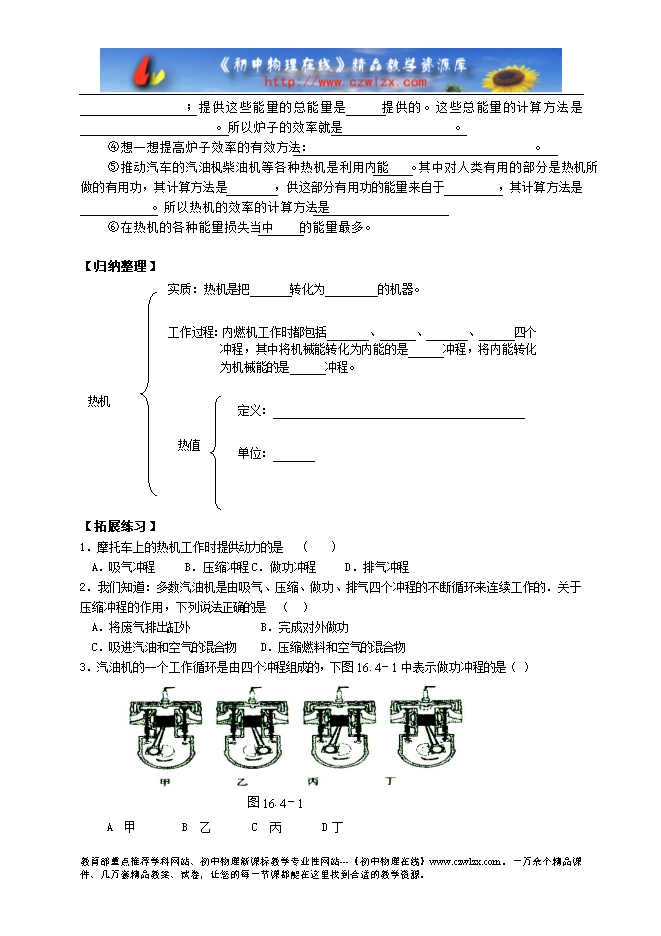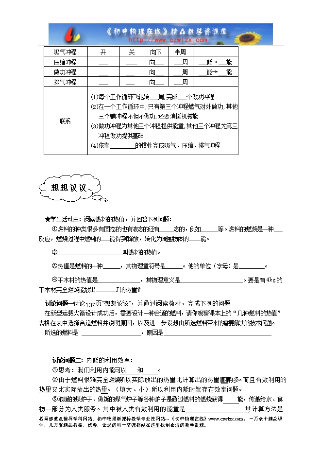 【学习难点】:热机中的能量转化及损失,了解热机效率.