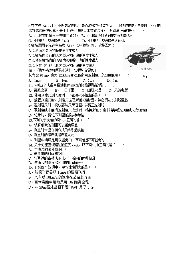 - 748第二章 运动的世界 单元测试卷--【精品课】沪科版2020-2021学年八年级上册同步备课资源