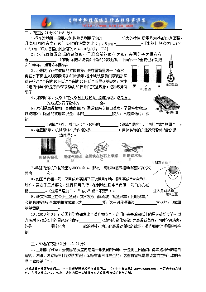 - 955贵州省遵义县第六中学2014届九年级上学期第一次月考物理试题(无答案)