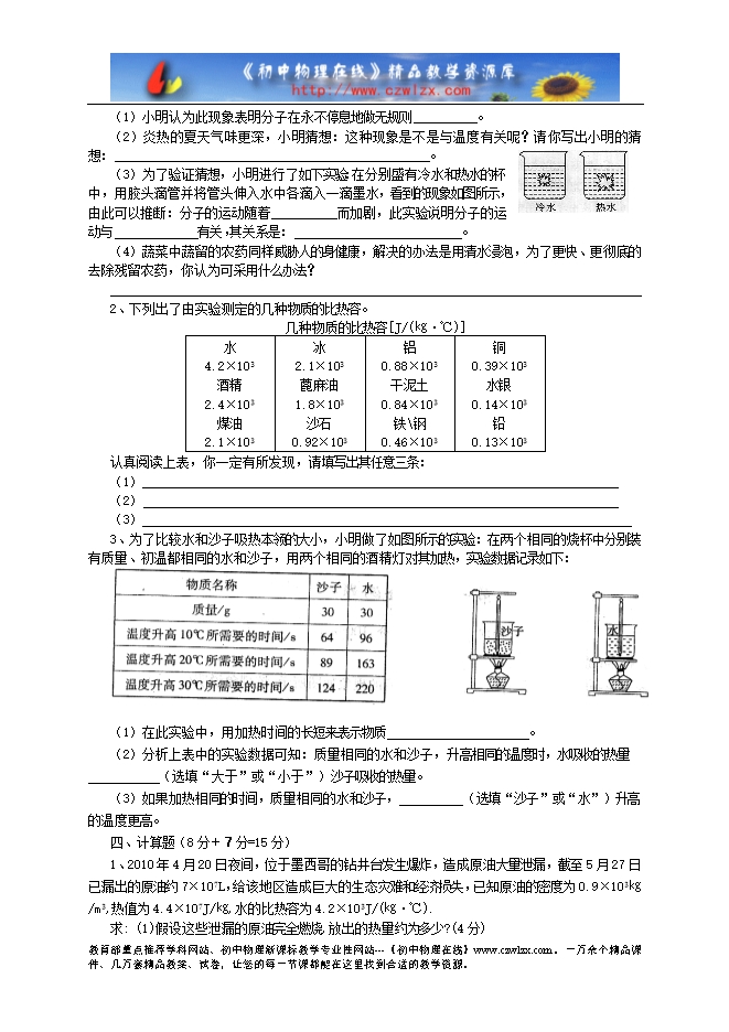 - 1131湖南省南县浪拔湖镇中学2014届九年级上学期第一次月考物理试题(无答案)