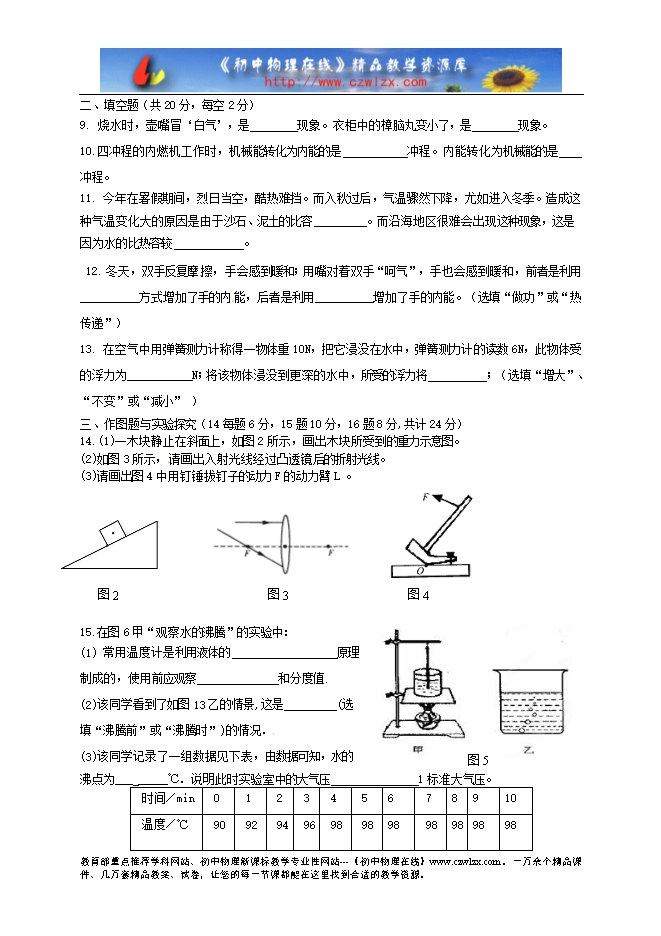 - 978重庆市大足邮亭中学2014届九年级上学期第一次月考物理试题(无答案)