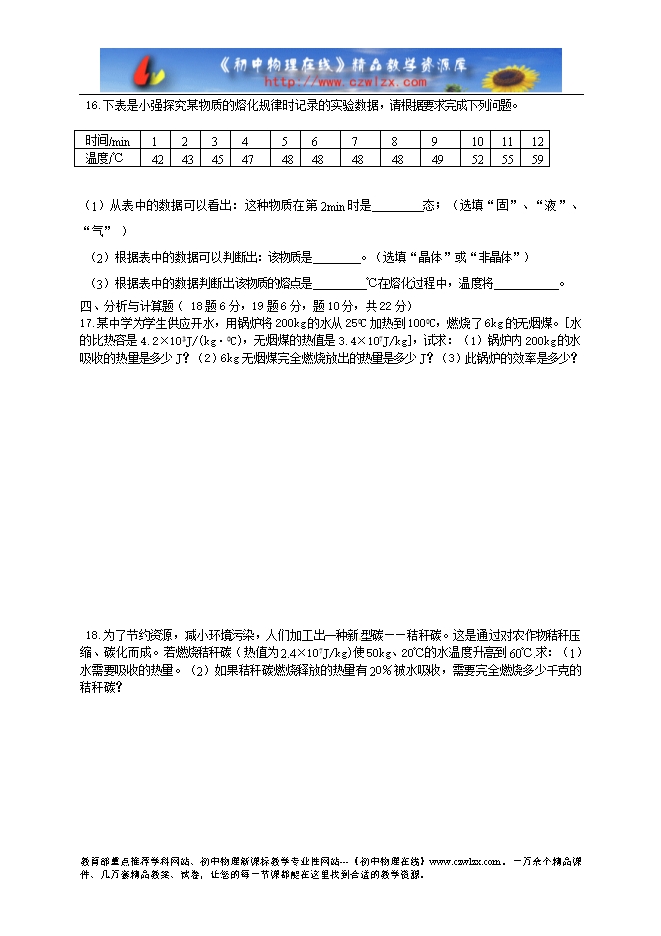 - 1131湖南省南县浪拔湖镇中学2014届九年级上学期第一次月考物理试题(无答案)