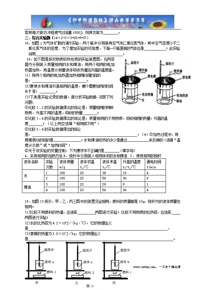 - 1215湖南省华容县三封中学2014届九年级上学期第一次月考物理试题(无答案)
