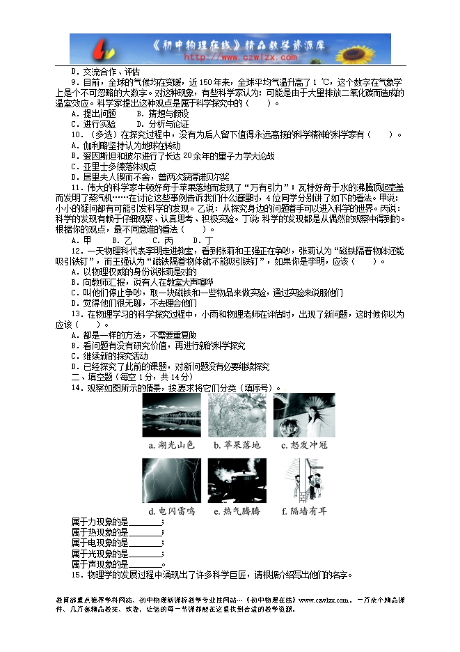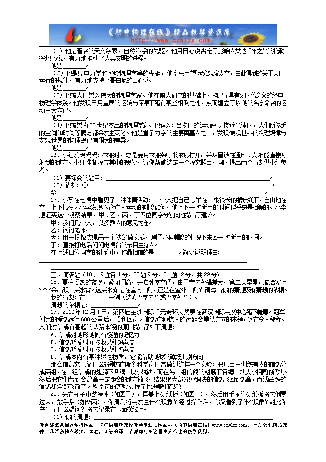 1.在众多的科学巨匠中,被后人誉为实验物理学先驱的科学家是( )。