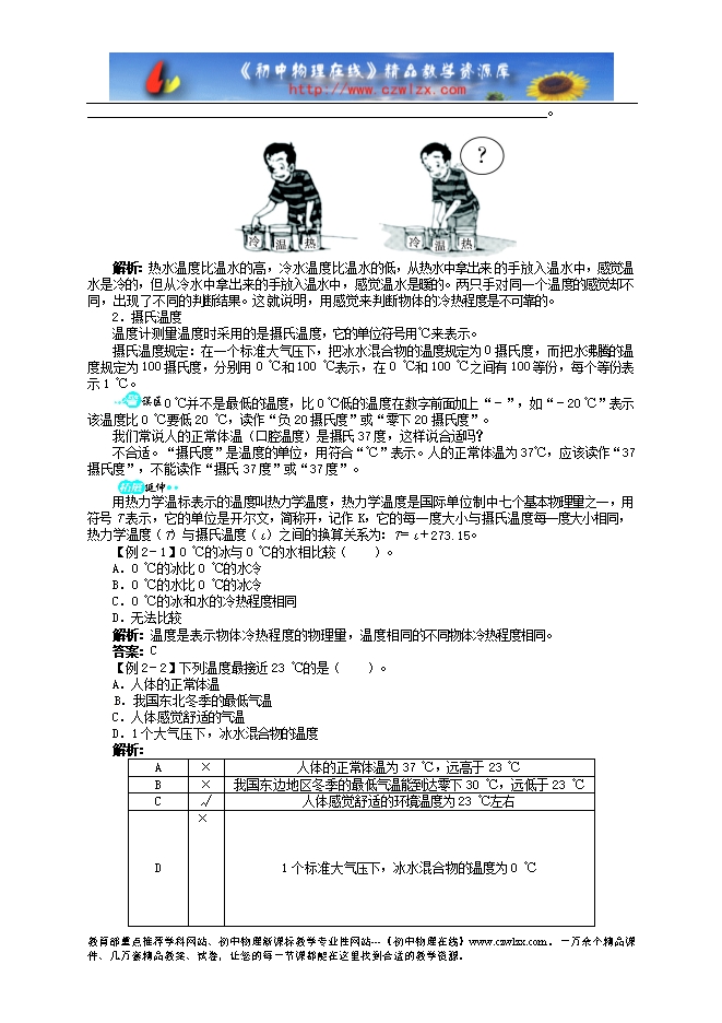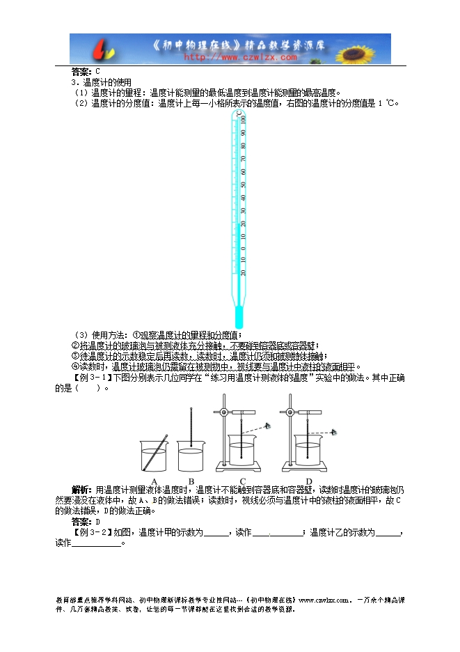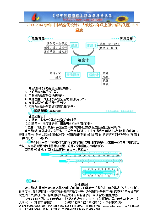 2013-2014学年《志鸿全优设计》人教版八年级上册讲解与例题:3.1温度