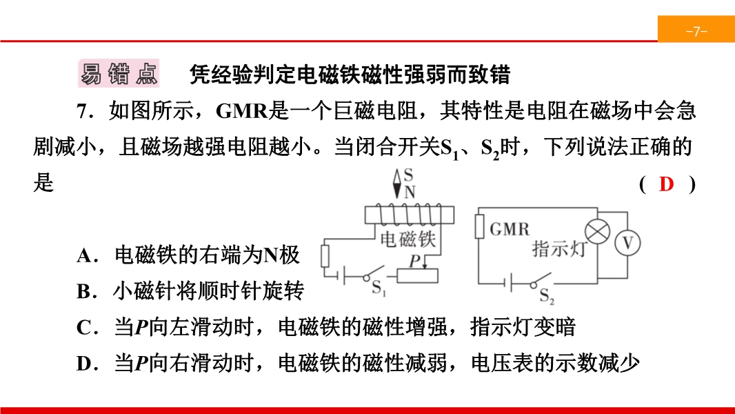 D. 在如图位置闭合开关后,向左移动滑动变阻器的滑片小灯泡变亮