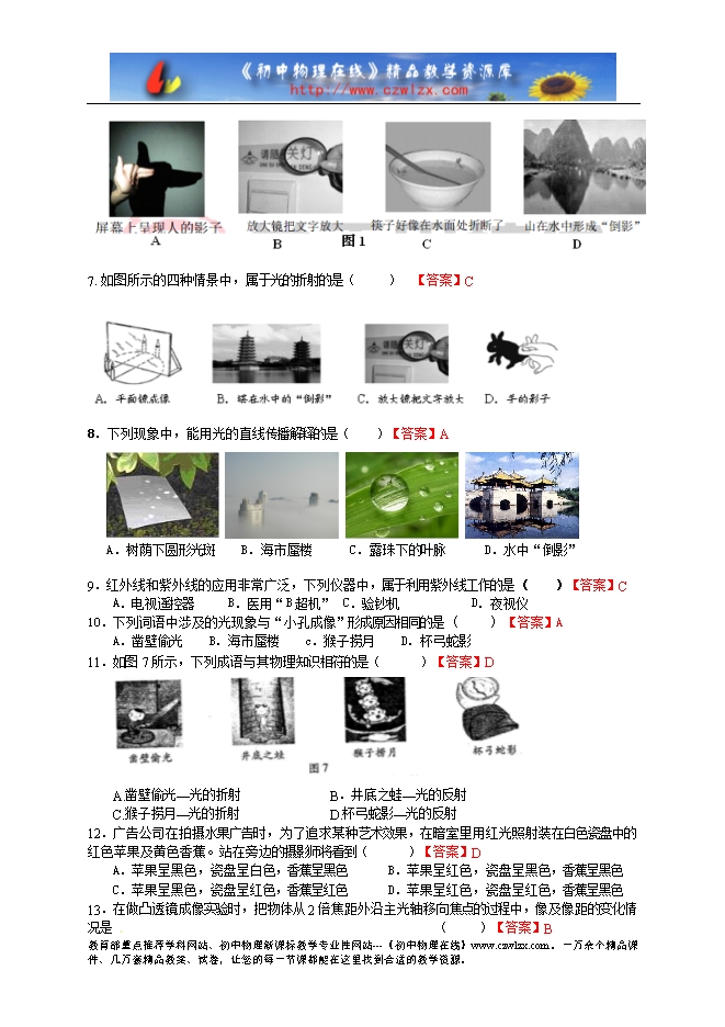 7.如图所示的四种情景中,属于光的折射的是( ) 【答案】C