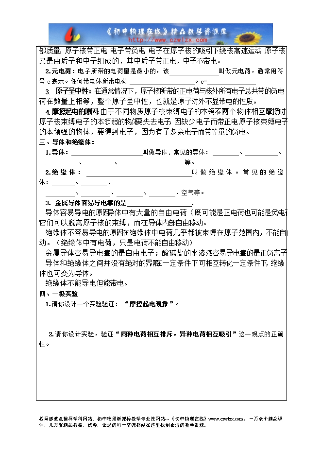 1. 带电体:物体有了 的性质,我们就说是物体带了电(荷)。这样的物体叫做带电体。