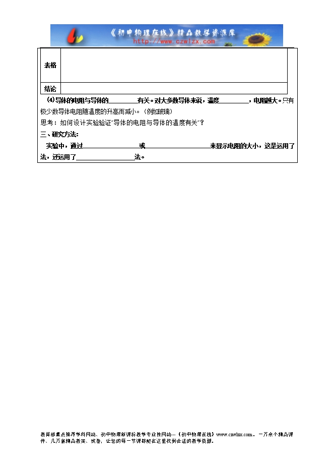 4. 导体的电阻是导体本身的一种 ,它的大小决定于导体的 (电阻率ρ)、 ( )和 (S),还与 有关。