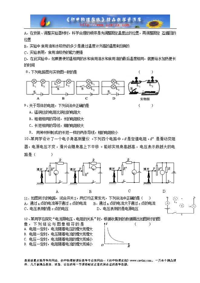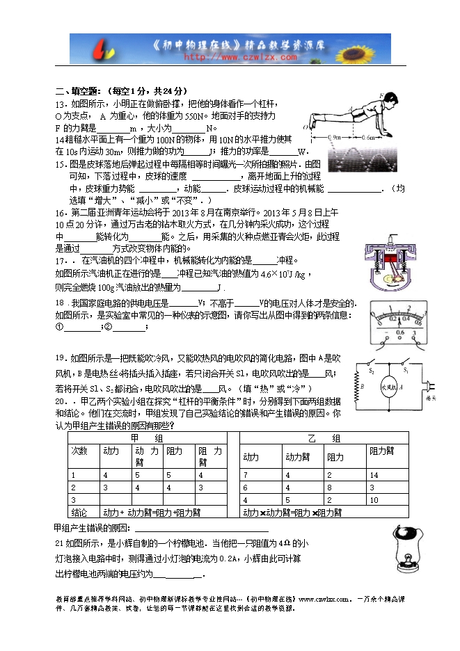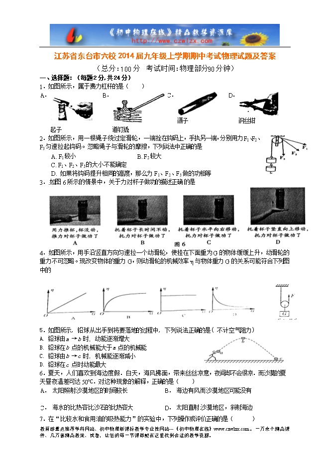 江苏省东台市六校2014届九年级上学期期中考试物理试题及答案