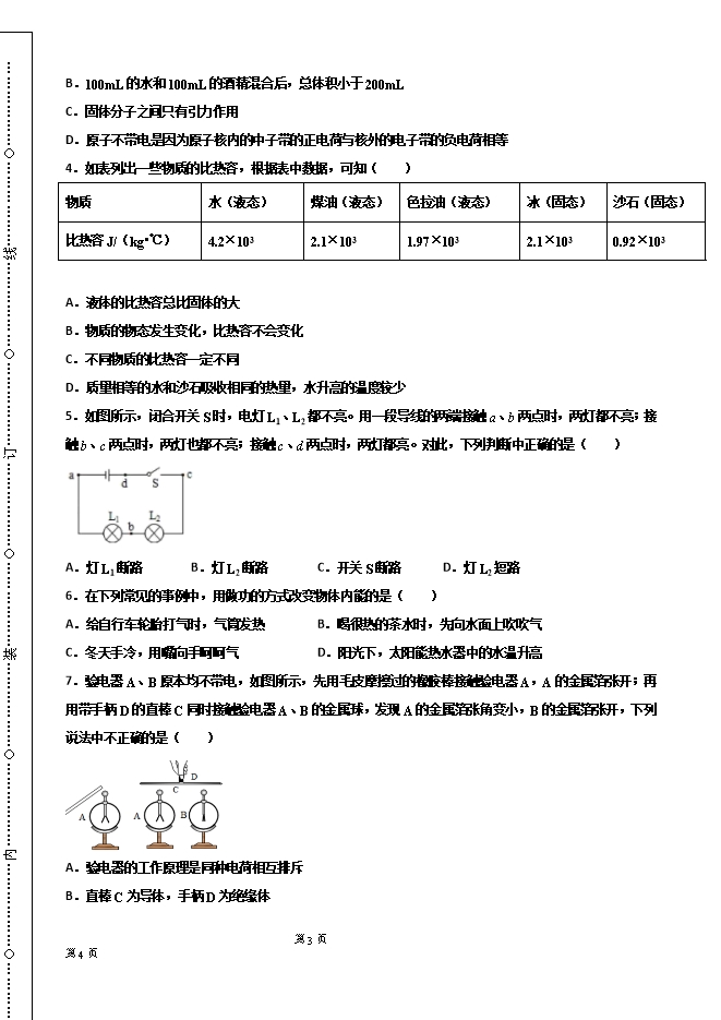A、只有空气能传播声音 B、空气和水都能传播声音