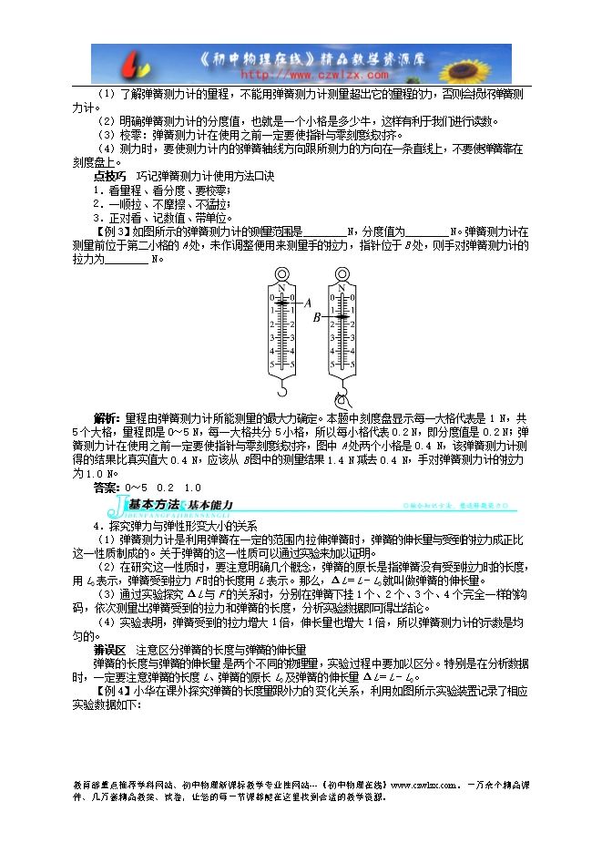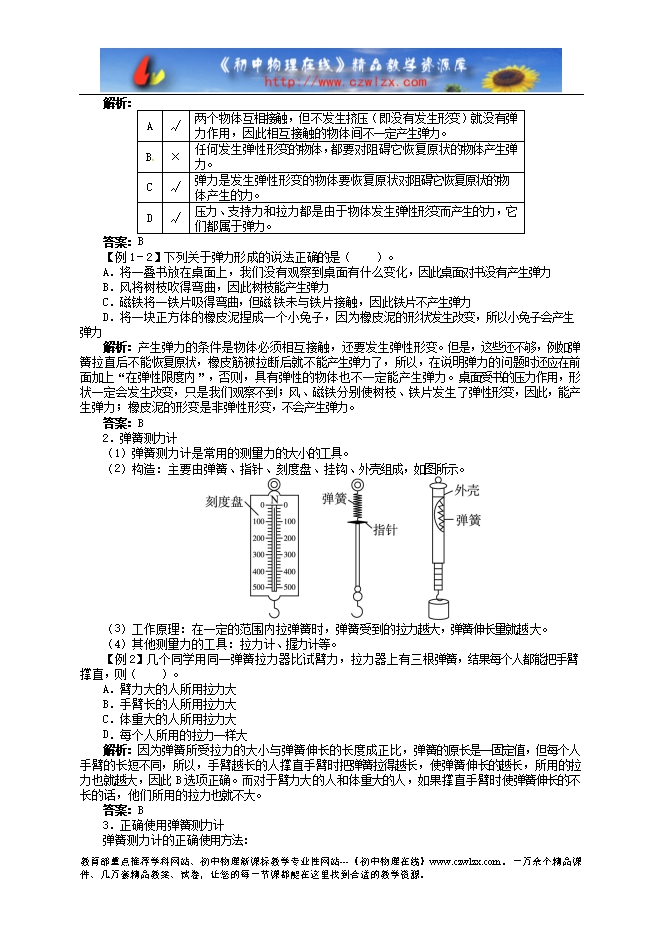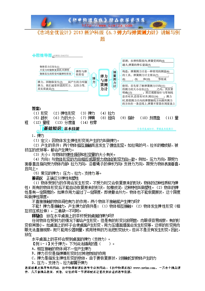 《志鸿全优设计》2013新沪科版《6.3弹力与弹簧测力计》讲解与例题