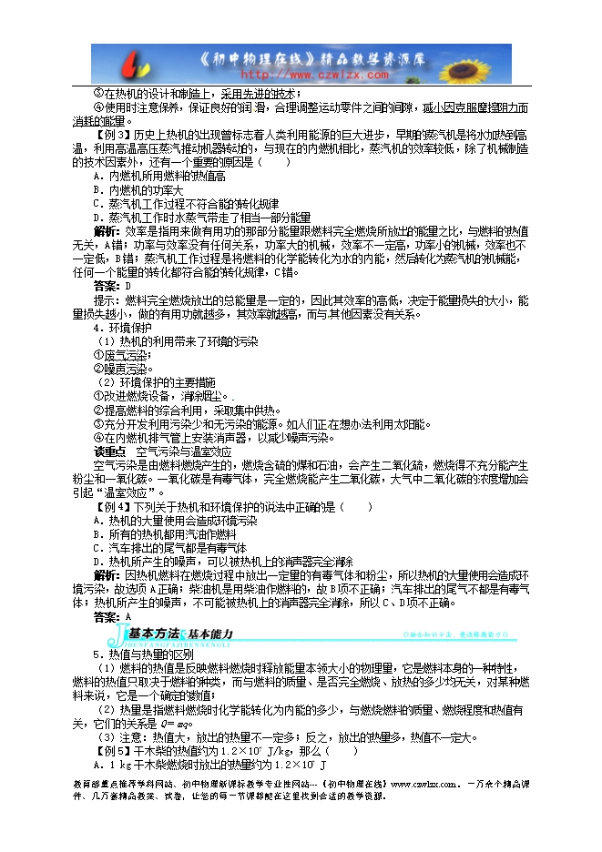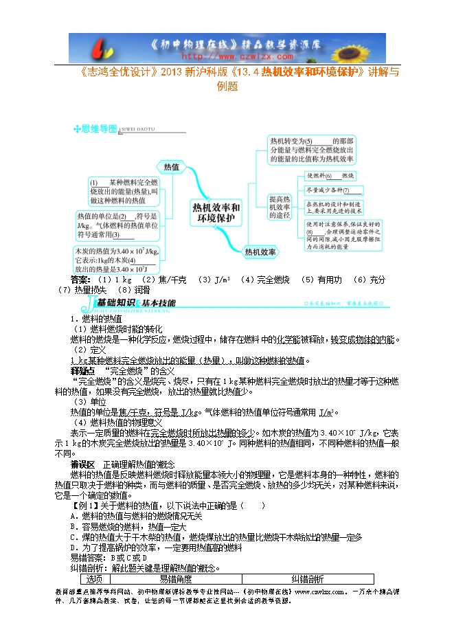 《志鸿全优设计》2013新沪科版《13.4热机效率和环境保护》讲解与例题