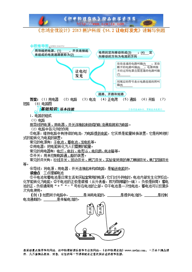 《志鸿全优设计》2013新沪科版《14.2让电灯发光》讲解与例题