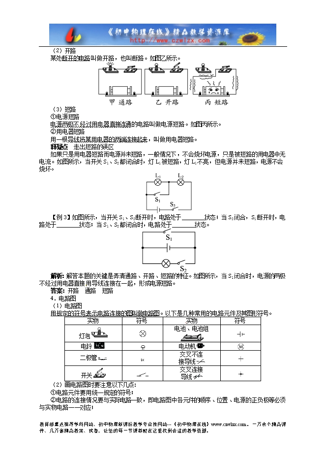 用导线把电源、用电器、开关连接起来组成的电 流通路就称为电路。