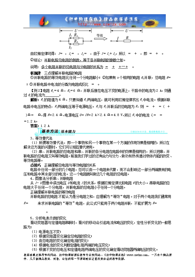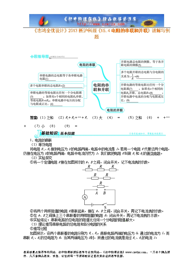 《志鸿全优设计》2013新沪科版《15.4电阻的串联和并联》讲解与例题