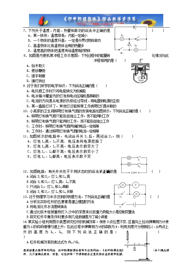 7.下列关于温度、内能、热量和做功的说法 中正确的是 ( )