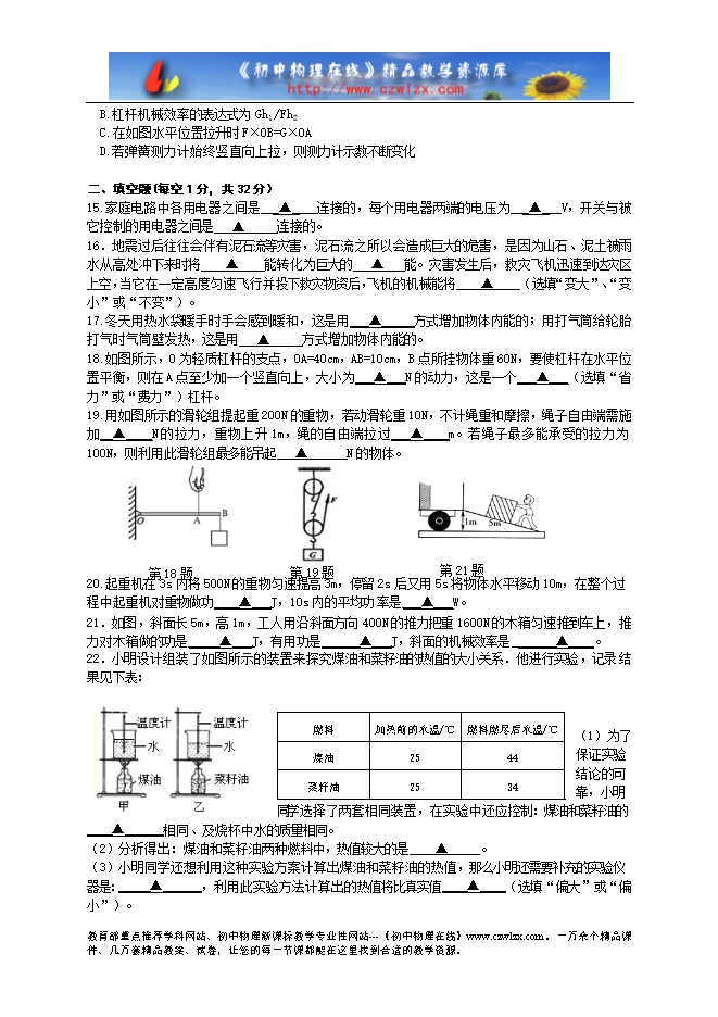 2.使用如图所示的装置来提升物体时,既能省力又能改变力的方向的装置是 ( )