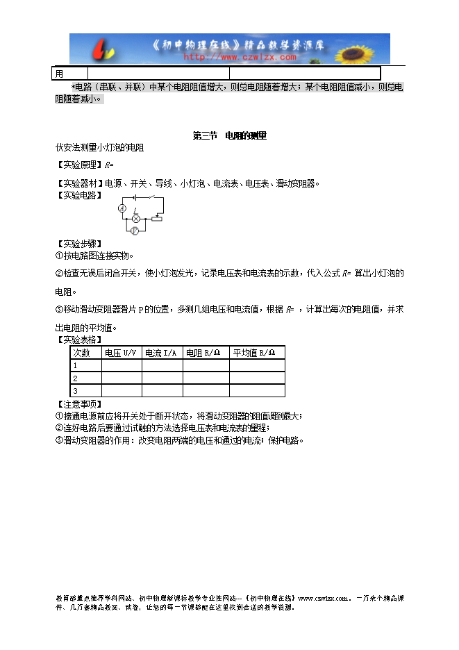 电阻特点 串联电路的总电阻,等于各串联电阻之和 ;