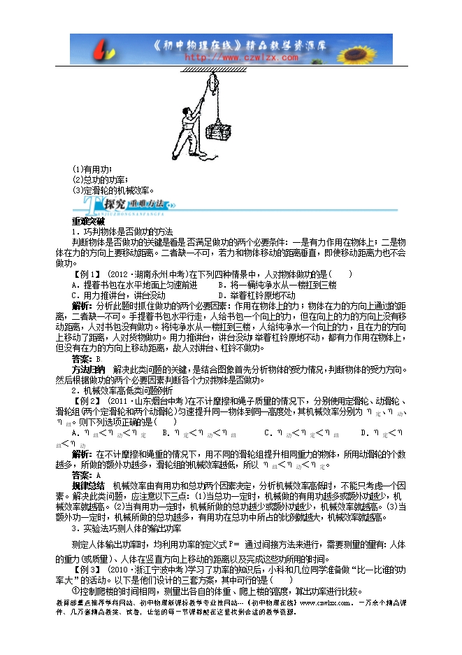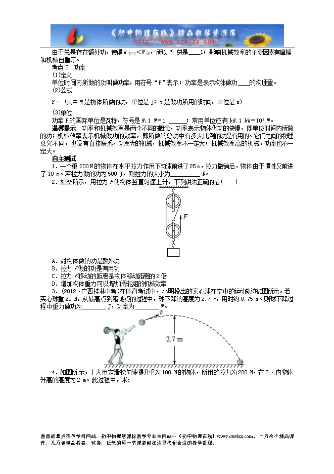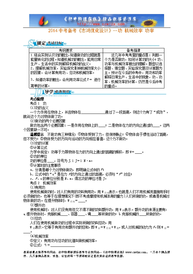 2014中考备考讲义《志鸿优化设计》--功 机械效率 功率