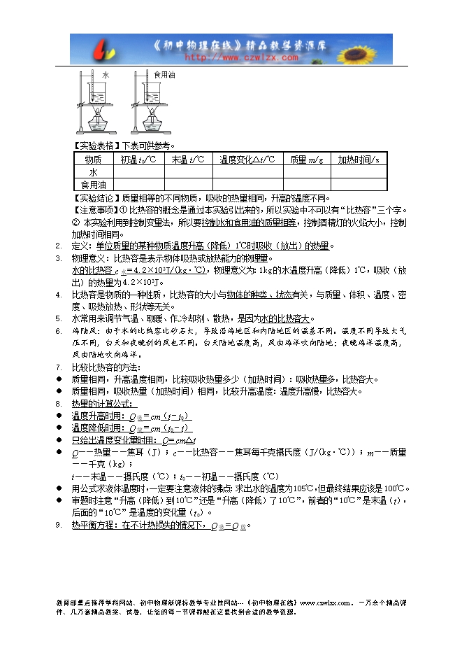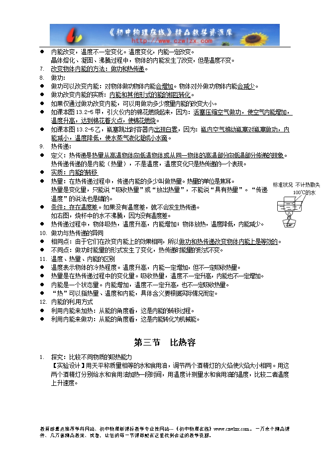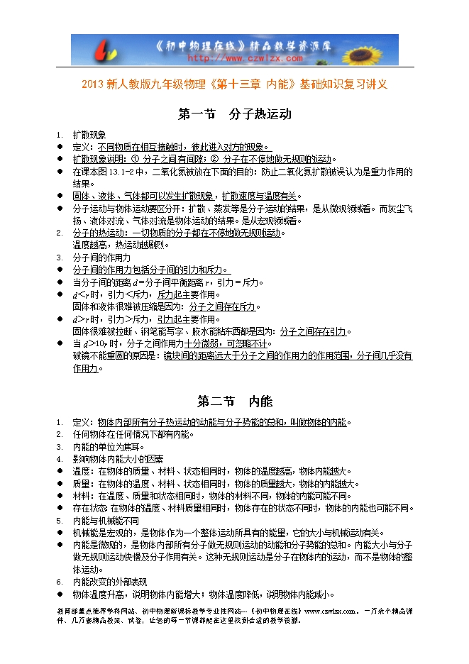 2013新人教版九年级物理《第十三章 内能》基础知识复习讲义