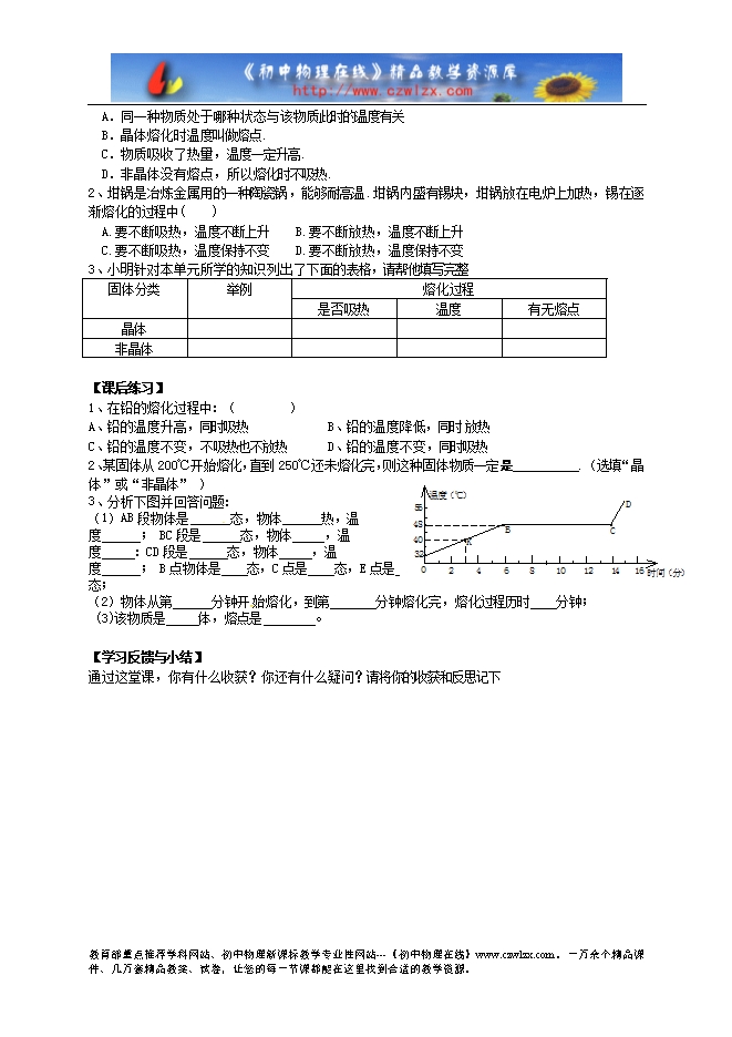 3、 知道晶体和非晶体的区别,熔化和 凝固时温度变化规律