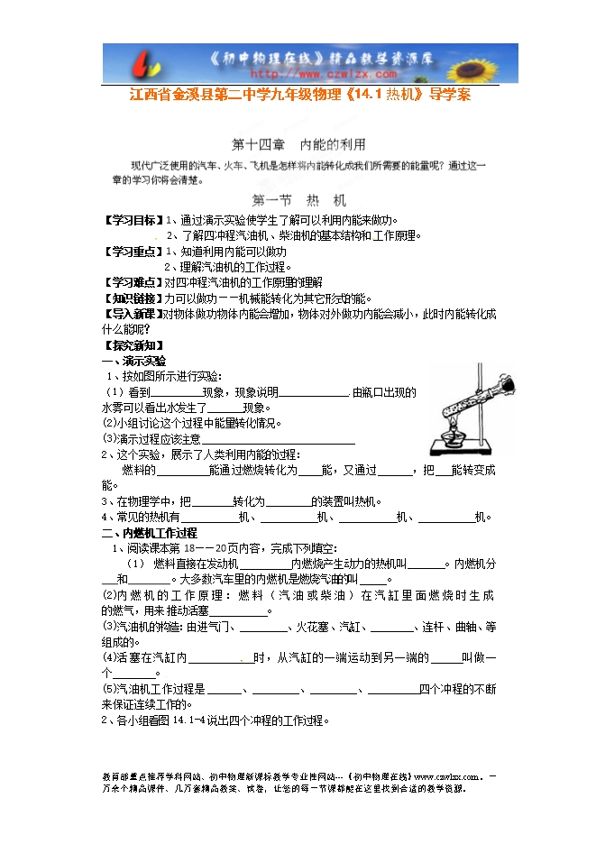 江西省金溪县第二中学九年级物理《14.1热机》导学案