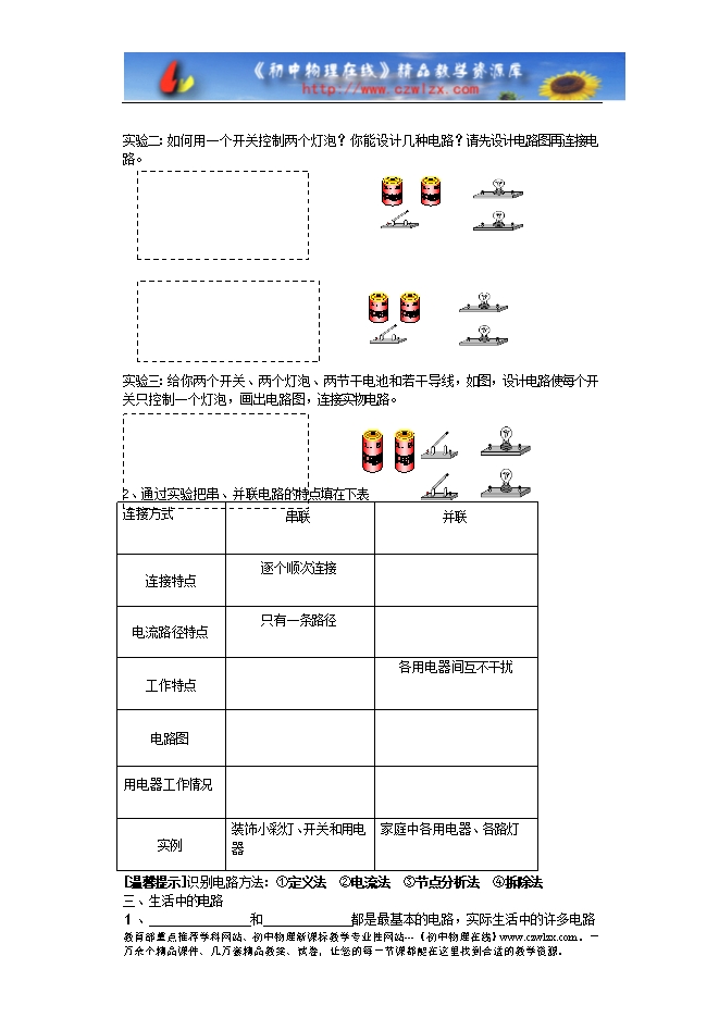 【内容简介】【学习重点】串联电路和并联电路的特点和生活中的串、并联电路