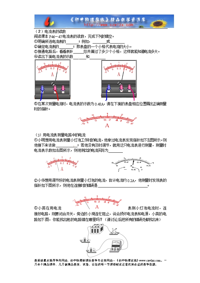 【内容简介】【学习重点】知道正确使用电流表的规则和能正确读数