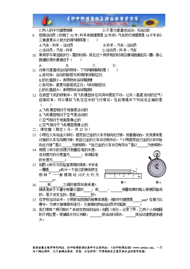 - 748第二章 运动的世界 单元测试卷--【精品课】沪科版2020-2021学年八年级上册同步备课资源