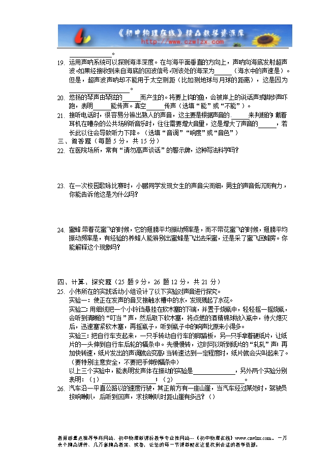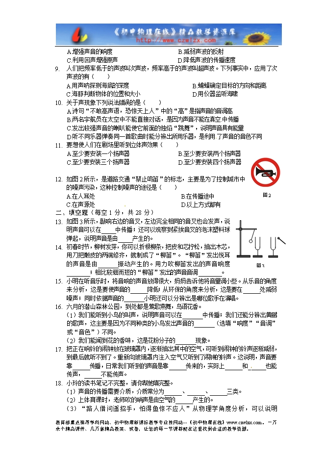 - 752024沪科版八年级上册《第二章 声的世界》提优测试卷及解析