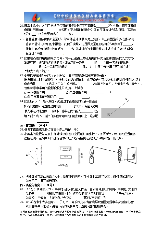 6.室内游泳池上方离水面6m处有一盏灯,从池边看到灯在水中的倒影正好贴在池底上,