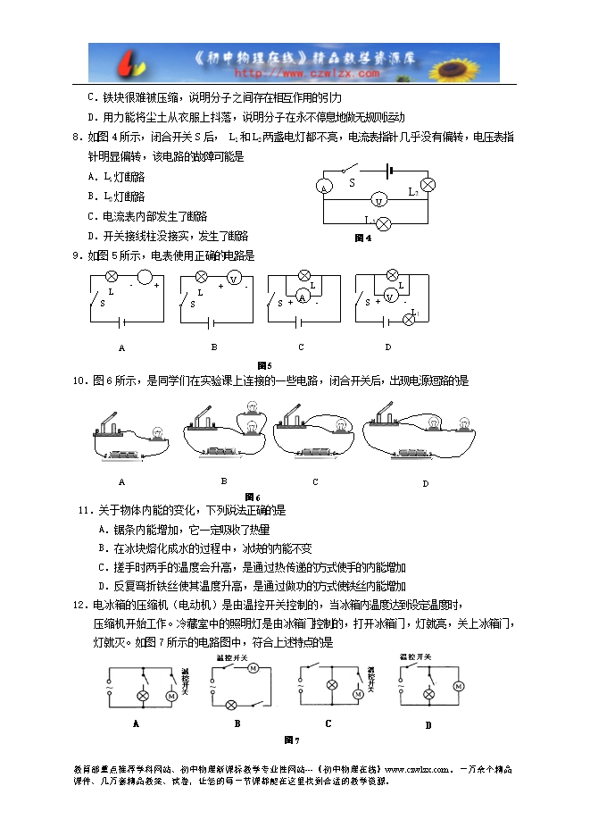 6.图3所示的四个电路中,闭合开关S后,两灯属于并联的是