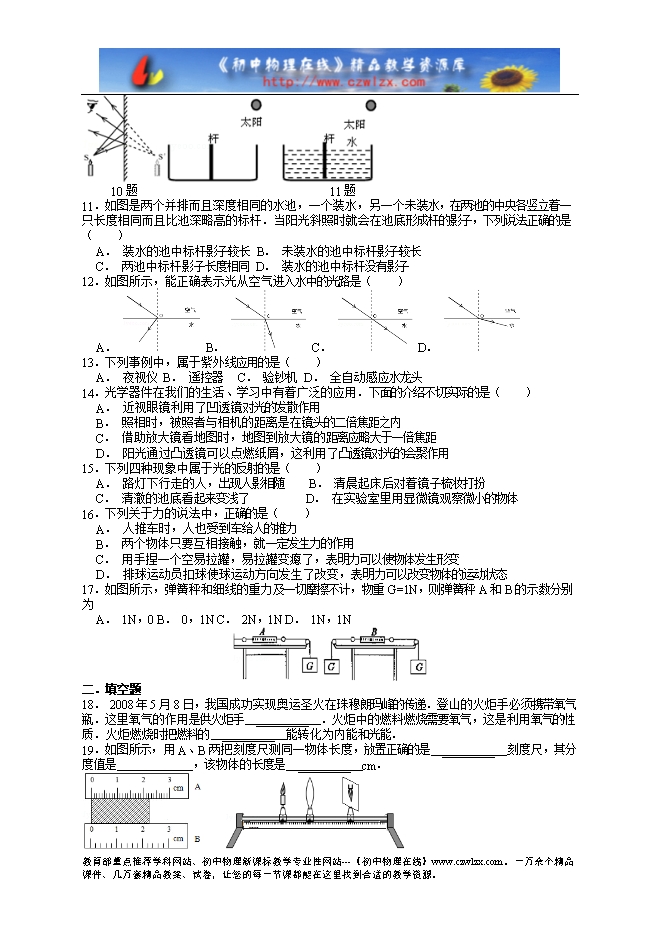 - 2159内蒙古巴彦淖尔地区2014届九年级上学期期末模拟考试物理试题及答案