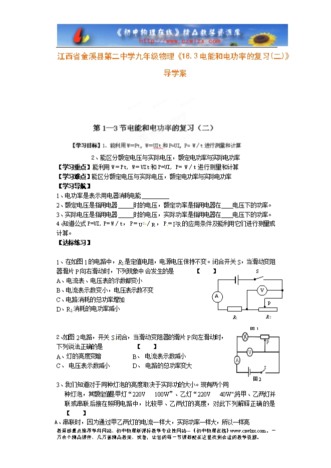 江西省金溪县第二中学九年级物理《18.3电能和电功率的复习(二)》导学案