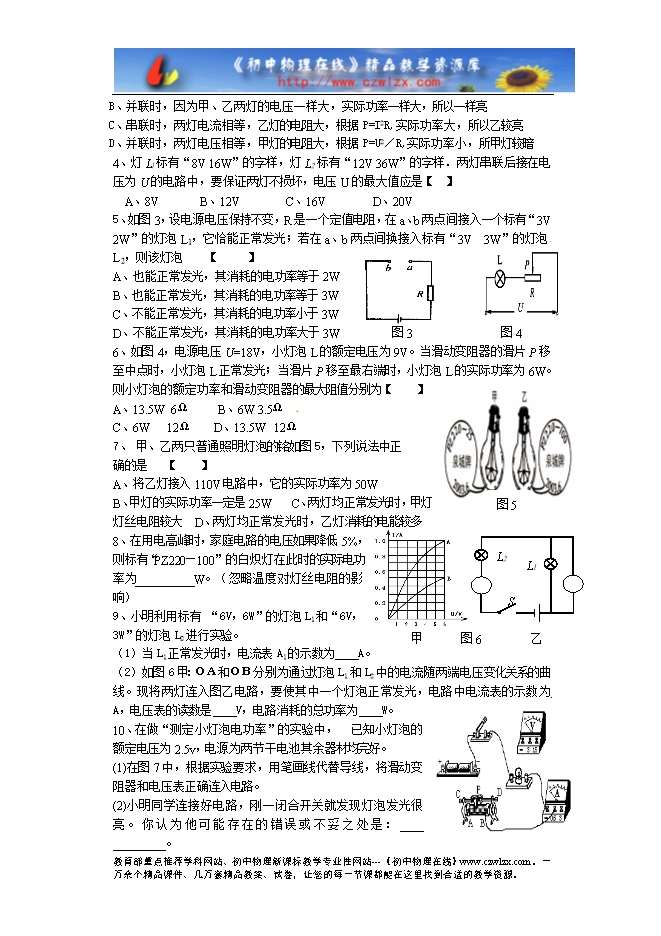 4、知道公式P=UI, P= W∕t, P=U2 ∕R , P =I2R的应用条件及能利用它们进行测量或计算。