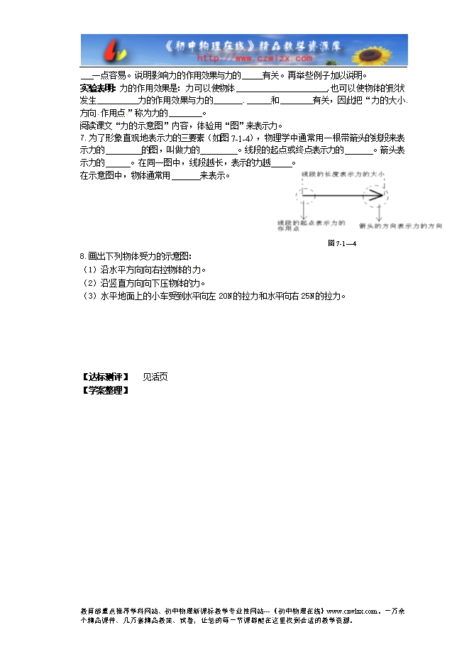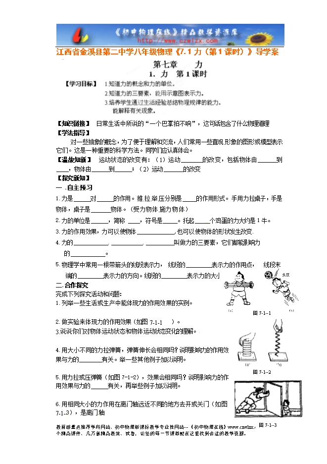 江西省金溪县第二中学八年级物理《7.1力(第1课时)》导学案