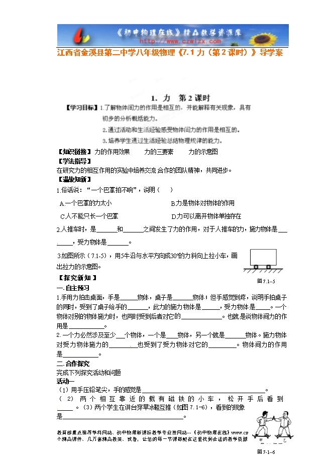 江西省金溪县第二中学八年级物理《7.1力(第2课时)》导学案