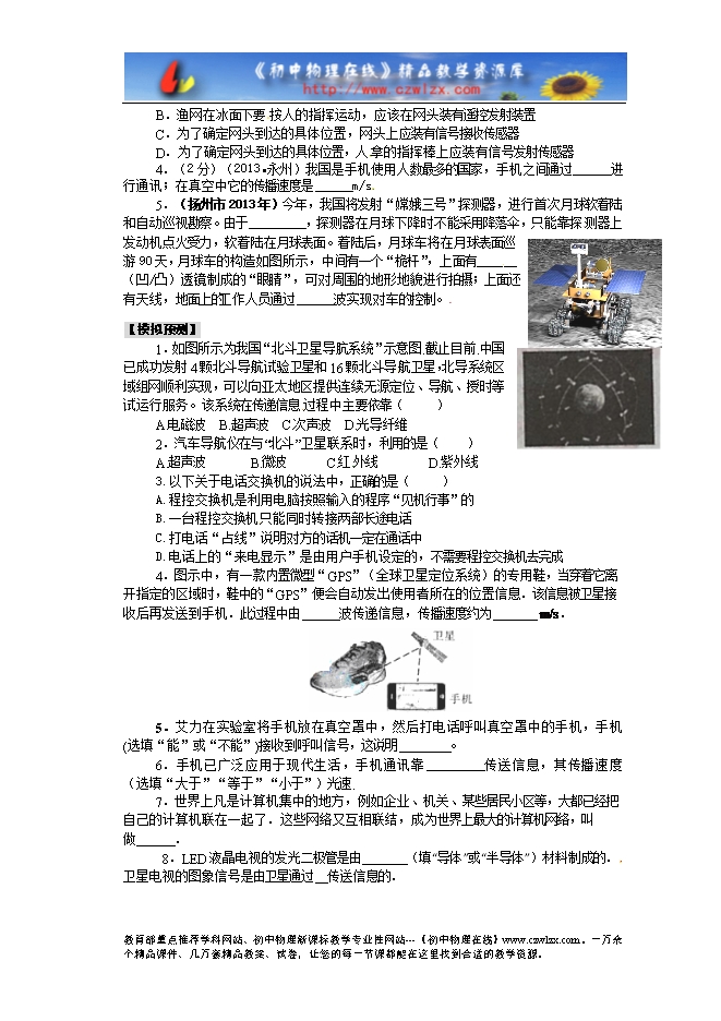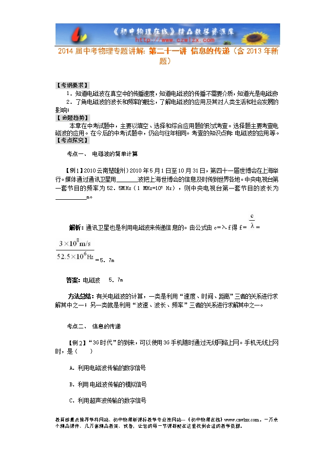 2014届中考物理专题讲解:第二十一讲 信息的传递(含2013年新题)