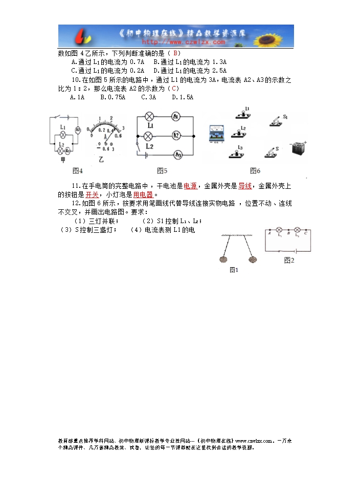 6.一个开关同时控制两盏灯的发光和熄灭,这两盏灯(C)