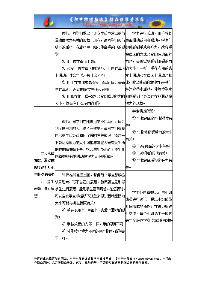 (3) 通过实验探究,了解影响滑动摩擦力大小的因素,培养学生的实验探究能力;