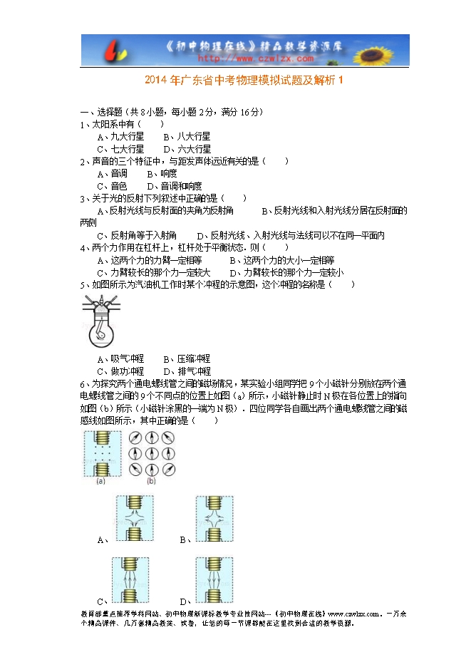 - 下一份试卷:2014年广东省中考物理模拟试题及答案2