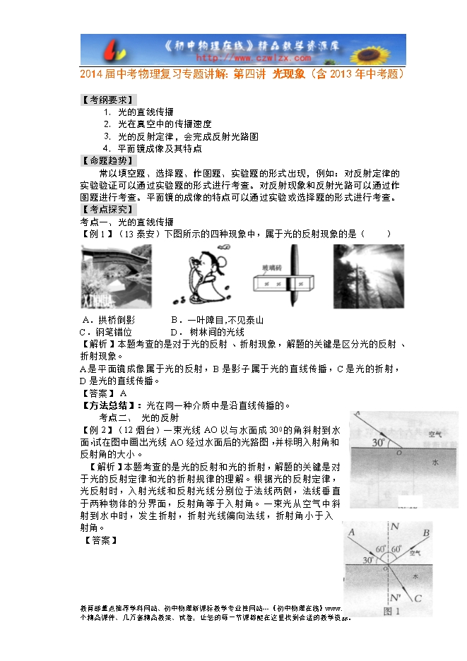 2014届中考物理复习专题讲解:第四讲 光现象(含2013年中考题)