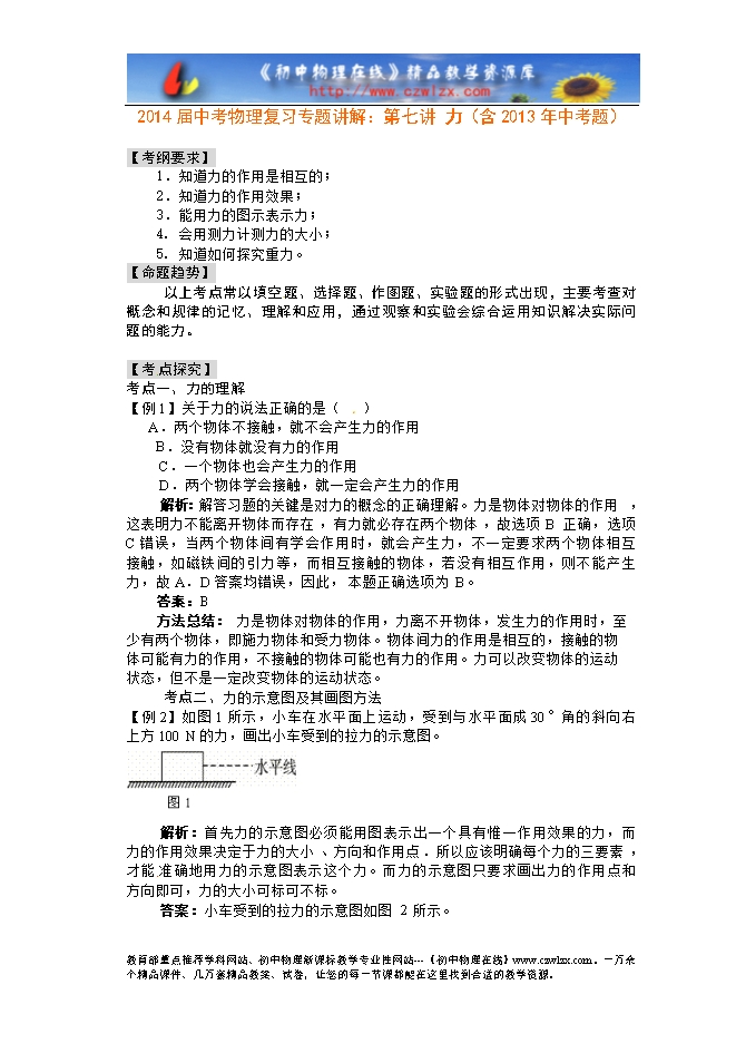 2014届中考物理复习专题讲解:第七讲 力(含2013年中考题)