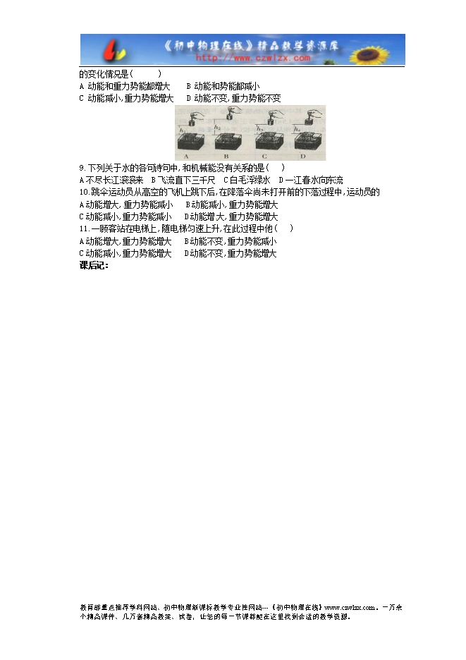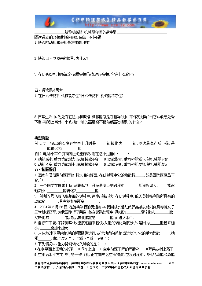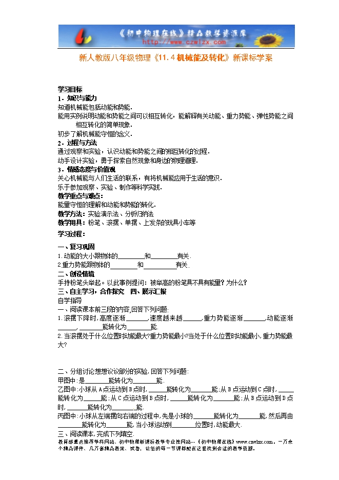 新人教版八年级物理《11.4机械能及转化》新课标学案